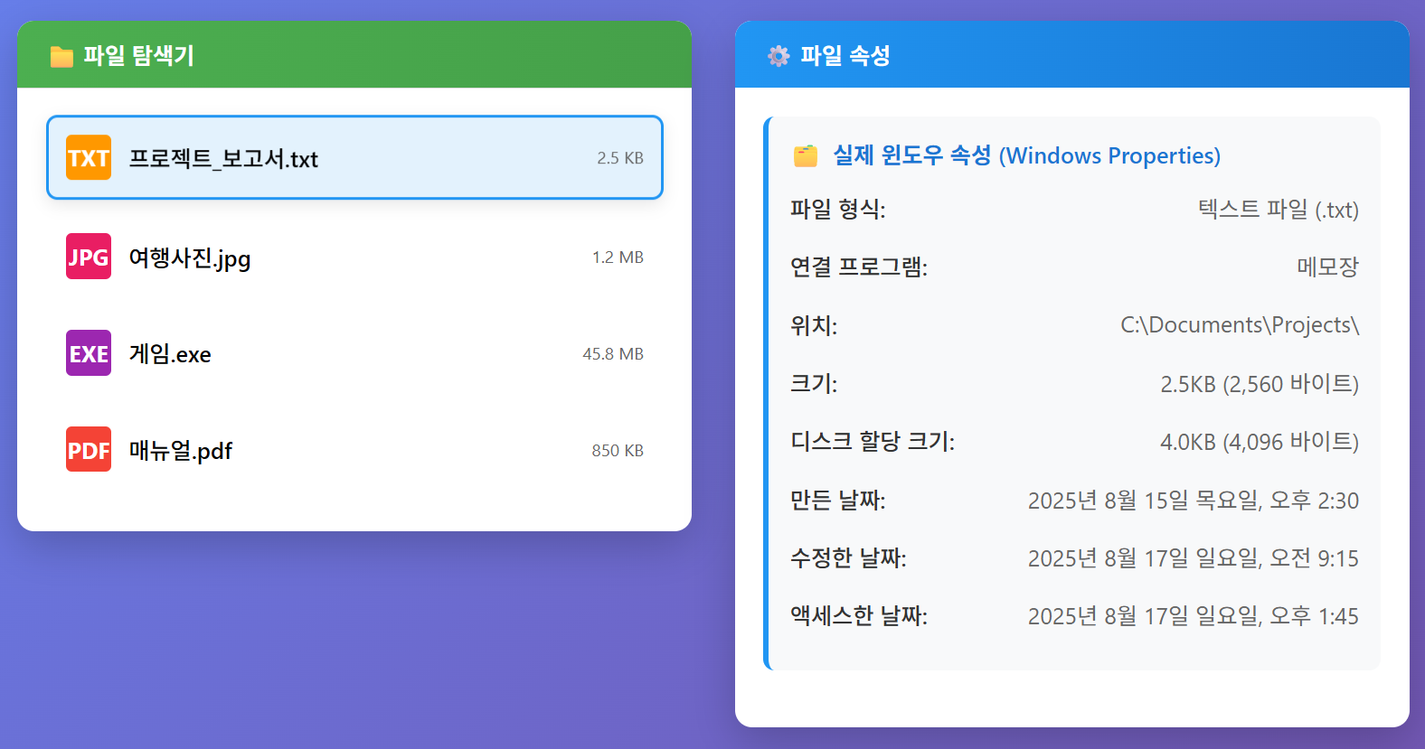 | 유형(Type) | 확장자를 통해 힌트 제공 (.txt, .jpg, .exe 등) |